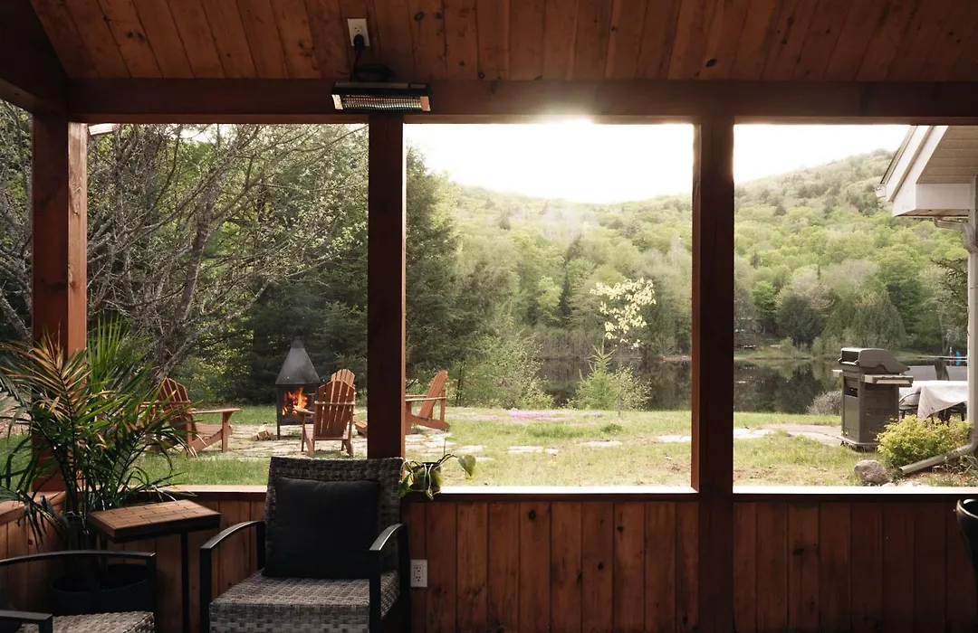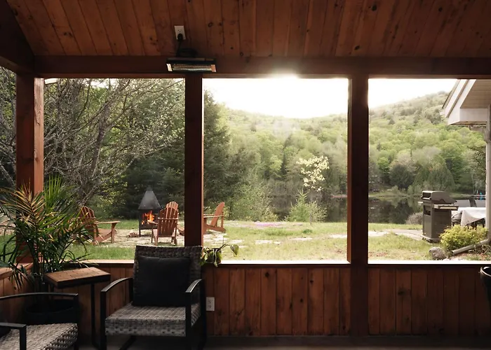 A tóra néző terasszal rendelkező Chalet Rustique, Lac Paisible, Canot, Famille La Conception 57 perces autóútra fekszik a Megfizetheto repulojegyek a Skyscannerrel repülőtértől.